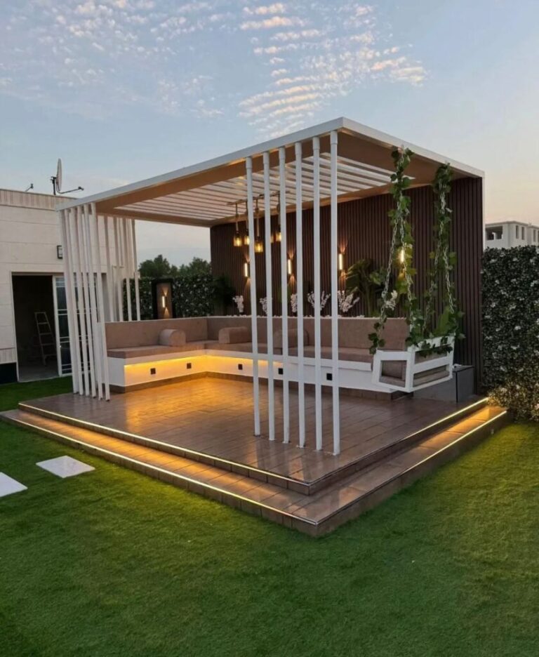في شركة حديقتى ، نقدم خدمات تصميم وتركيب برجولات ومظلات جلسات الحدائق التي تضيف لمسة من الأناقة والراحة إلى مساحاتك الخارجية. نختار المواد عالية الجودة، مثل الخشب والمعدن، لتصميم مظلة متينة وجميلة توفر الحماية من الشمس والأمطار. سواء كنت تحتاج إلى برجولة لتصميم مناطق الجلوس أو مظلات لحماية النباتات والأثاث، نحن نضمن تنفيذ التصميمات بدقة واحترافية. فريقنا المتخصص يعمل على تقديم حلول تلائم ذوقك واحتياجاتك، لتحسين جمالية وحديقتك وزيادة استخدامها بشكل مريح وعصري.