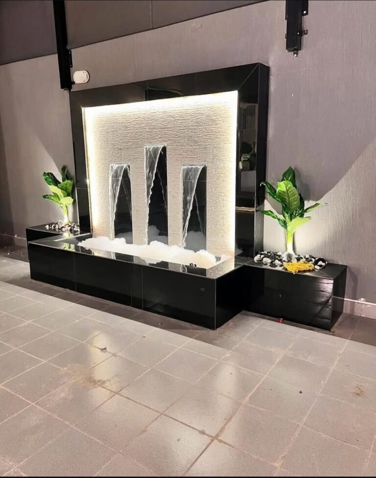 تصميم الشلالات يجمع بين الجمال الطبيعي والهندسة الفنية، حيث تنساب المياه بانسيابية فوق الصخور لتخلق مشهداً هادئاً ومريحاً. يعتمد التصميم على توزيع الارتفاعات، اختيار المواد، والإضاءة لتعزيز الإحساس بالحركة والانسجام في الفراغ بشكل متوازن وجذاب