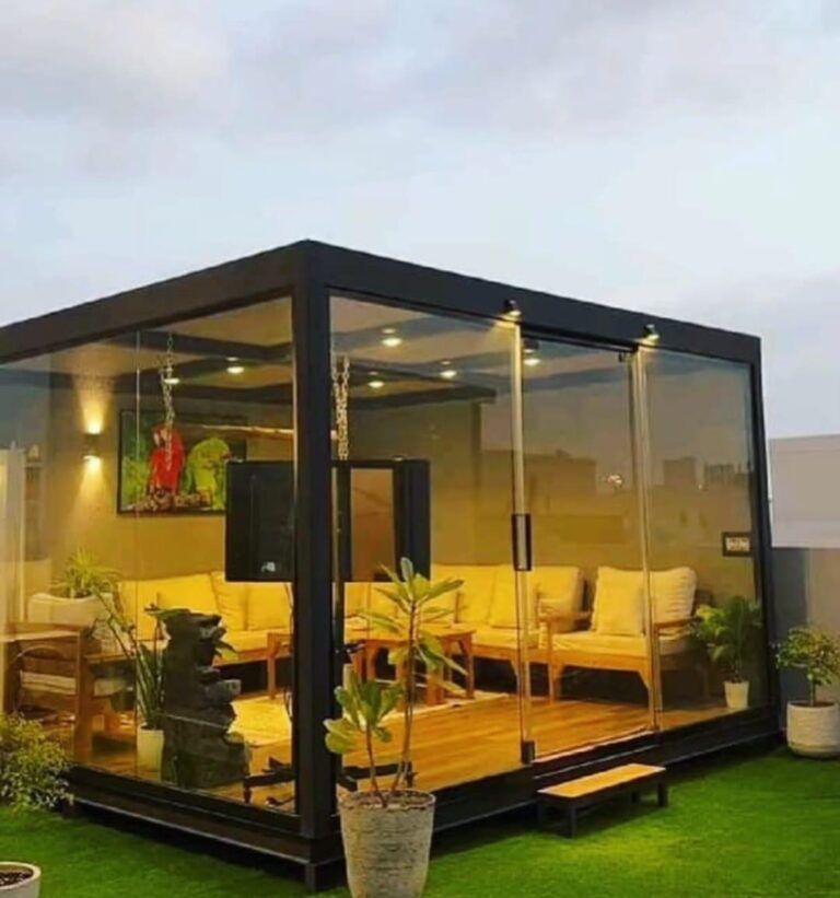 الغرف الزجاجية توفر مساحة أنيقة تجمع بين الإضاءة الطبيعية والإطلالة المفتوحة، حيث تعزز الشعور بالاتساع والراحة. يعتمد تصميمها على استخدام زجاج عالي الجودة وهياكل متينة لضمان العزل والخصوصية مع الحفاظ على الجمال العصري