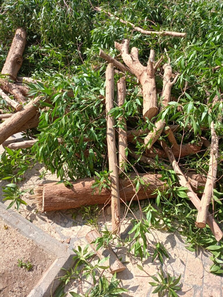 زراعة وقص الأشجار يساهم في خلق بيئة خضراء وصحية، حيث تُزرع الأشجار بعناية ويُقص فرعها بشكل منتظم لتعزيز النمو، تحسين الشكل الجمالي، وضمان السلامة ومنع انتشار الأمراض والآفات كي يستمتع الاطفال بجمال المنظر.