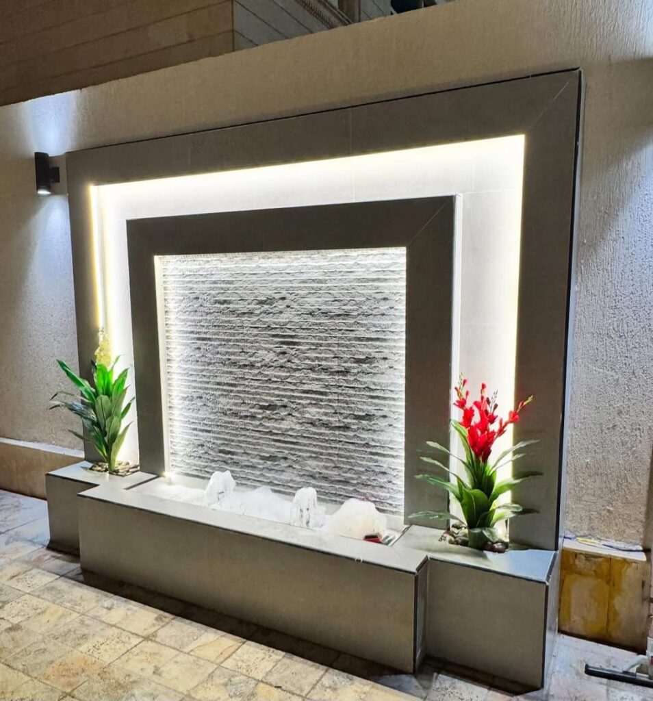 ولا يقتصر تصميم الشلالات على الشكل فقط، بل يشمل أيضًا النظام المائي الداخلي، والذي يُعد العنصر الأهم لضمان تدفق المياه بشكل مستمر وسلس. يتم تركيب مضخات مياه عالية الجودة، مع أنظمة ترشيح تمنع تراكم الأوساخ وتحافظ على نقاء المياه. كما يتم تصميم مسارات المياه بعناية لضمان صوت انسيابي مريح يعزز الأجواء الهادئة في المكان. في هذا الجانب، تقدم مؤسسة حديقتي حلولًا متطورة تضمن كفاءة التشغيل وسهولة الصيانة.