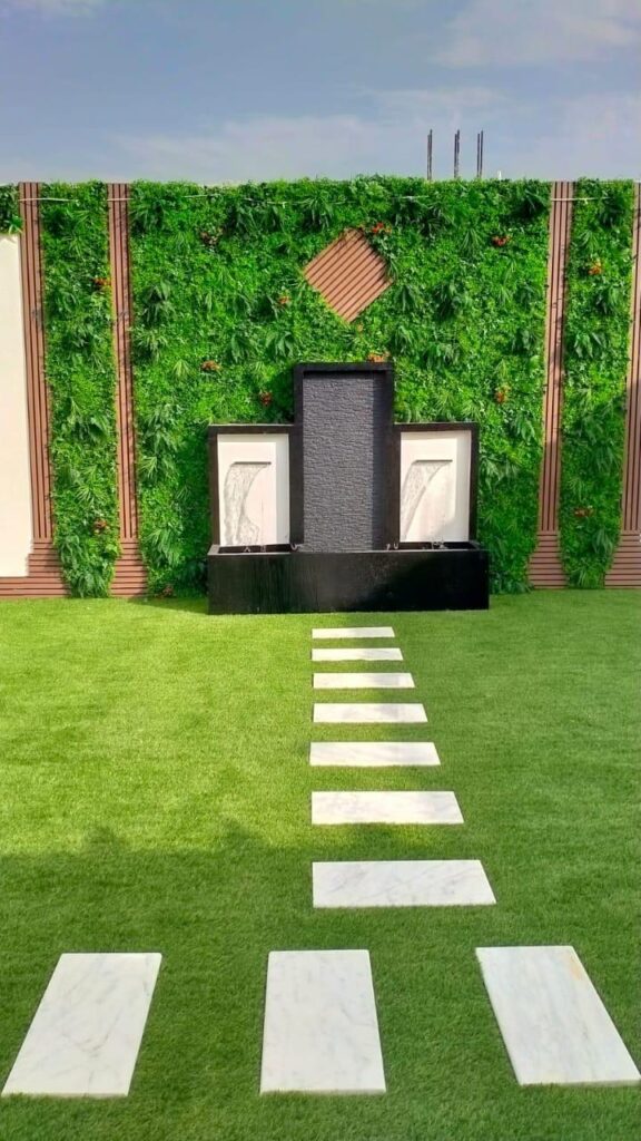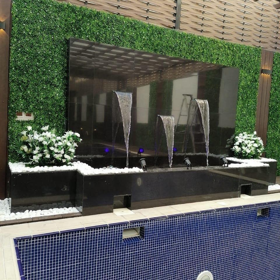 تصميم الشلالات تصميم النوافير تركيب المظلات الغرف الزجاجية عشب طبيعي عشب صناعي عشب جداري زراعة وقص الاشجار زراعة وتكريب النخيل